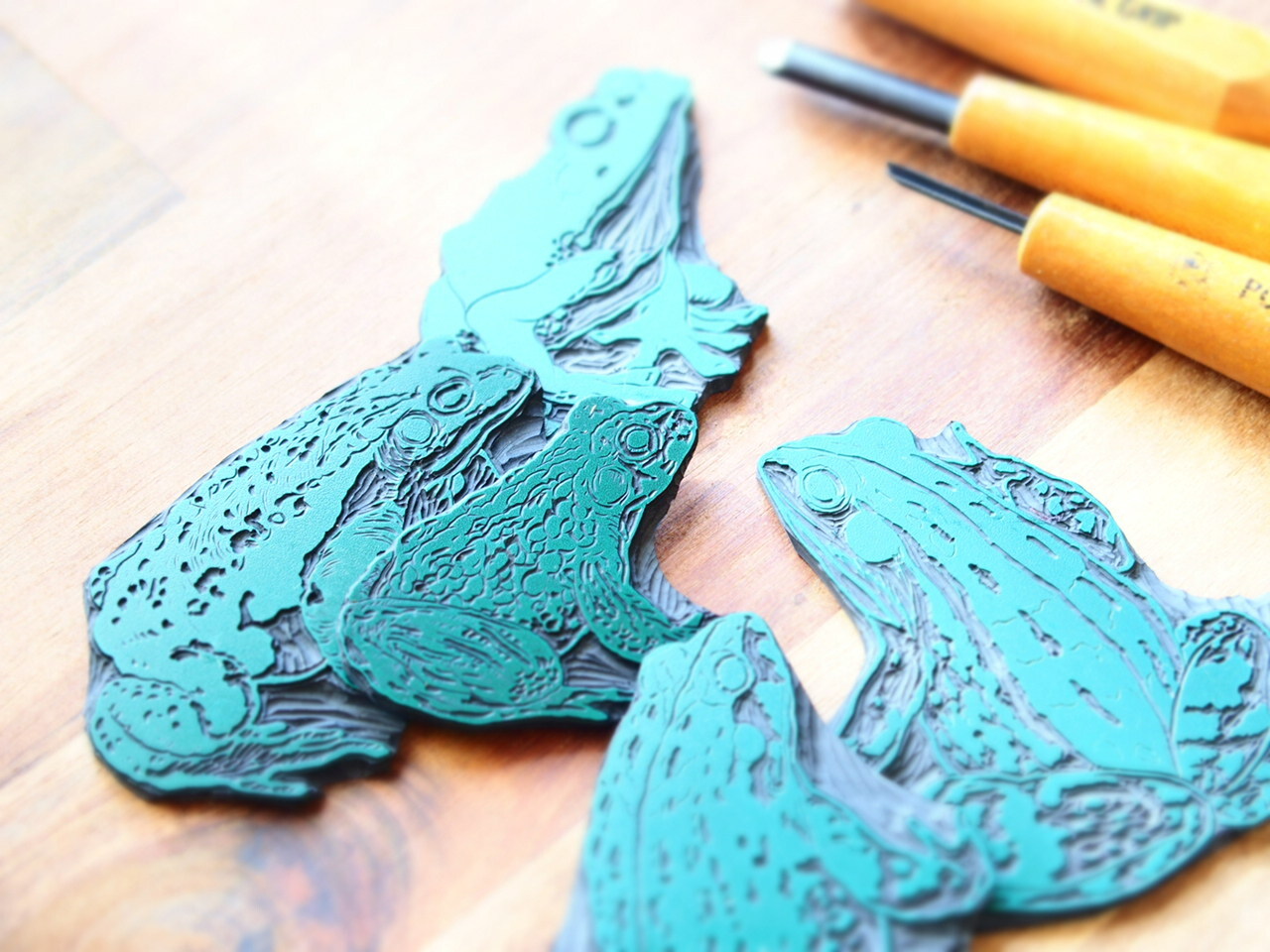 団地童の紙ものは手彫りの版を用いて手刷りで制作しています。