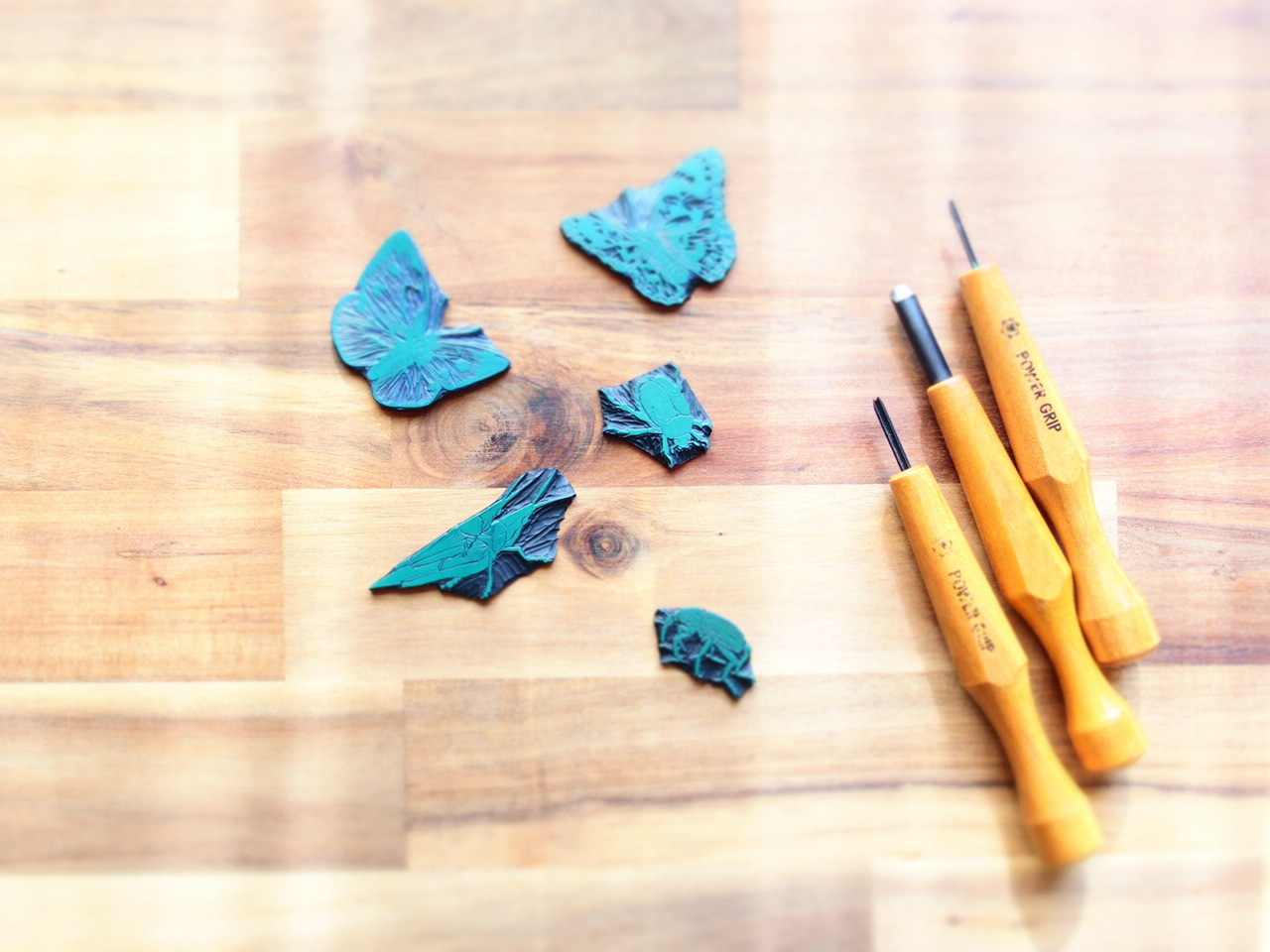 団地童のはんこはすべて彫刻刀を用いた手彫りのはんこ作品です。