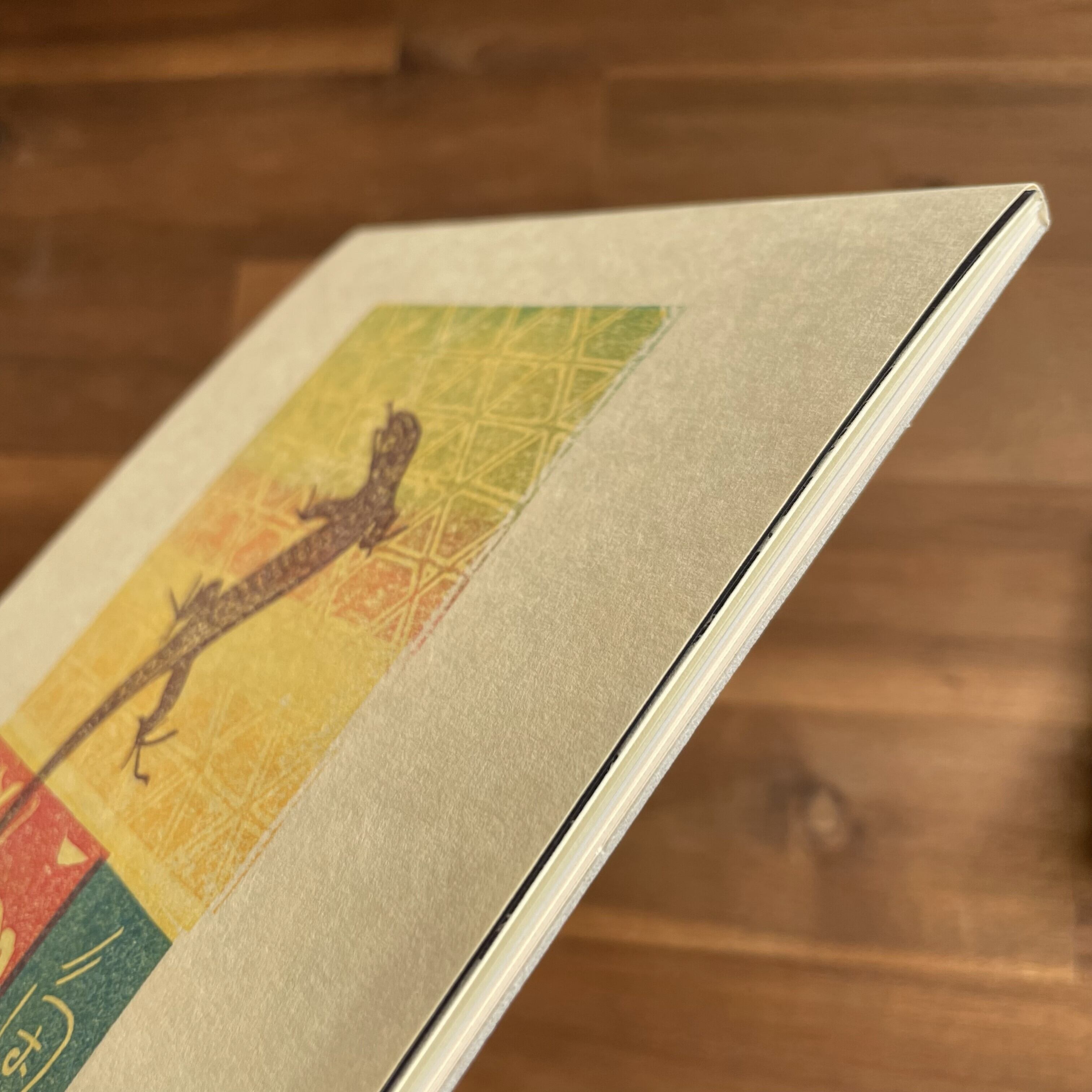 様々な生き物を彫った版を用いて一枚ずつ手刷りして仕上げた便箋に、天面を糊付けし綴じました。